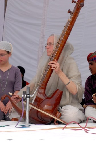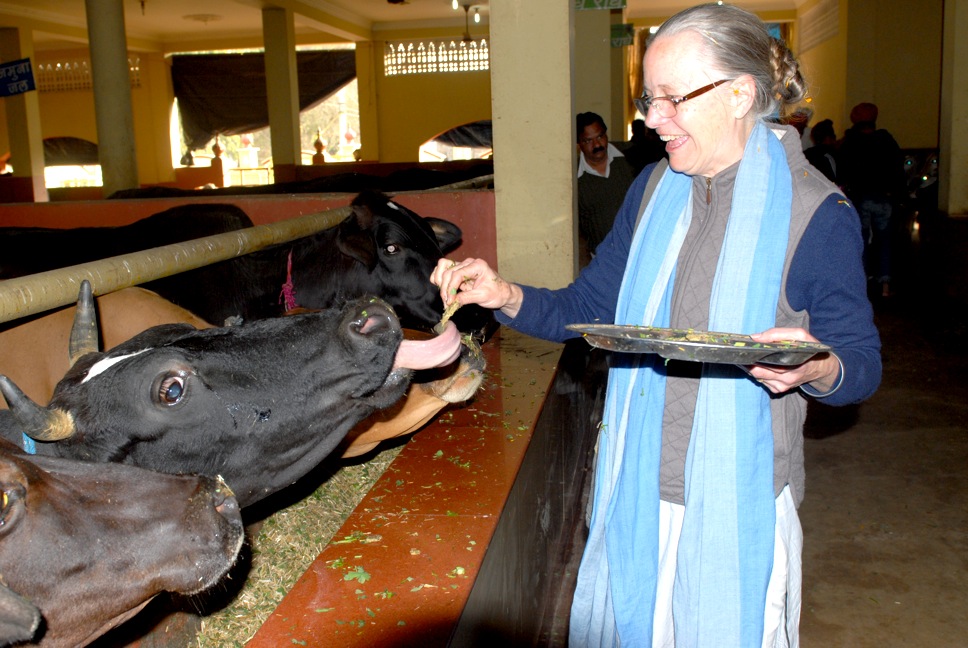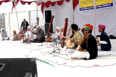 We also sang at a television station, a prison, a home program, and a cow shāla. All of these were unique experiences. For the television program, Bhai Baldeep was joined on stage by a diverse group of men and women who came together to sing kirtan. The variety of instruments and headdresses illustrated the presence of Muslim and Hindu musicians along with Sikhs from various communities and countries, a colorful garden singing in rāga basant, “The sky blooms, the earth blooms, the Lord King blooms in eternal love, everywhere you look. The Vedas bloom, the Smritis bloom, the Bible and Koran bloom. Shiva blooms in yoga and meditation, Kabir’s master is in everything just the same.” When this program airs, the viewers will see something very different than the usual image of matching rāgis with harmonium and tabla. The listeners will hear a new sound that is also very old, when they hear rāg basant delivered by Bhai Baldeep Singh, accompanied by stringed instruments and Parminder Singh Bhamra on pakhāwaj.