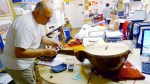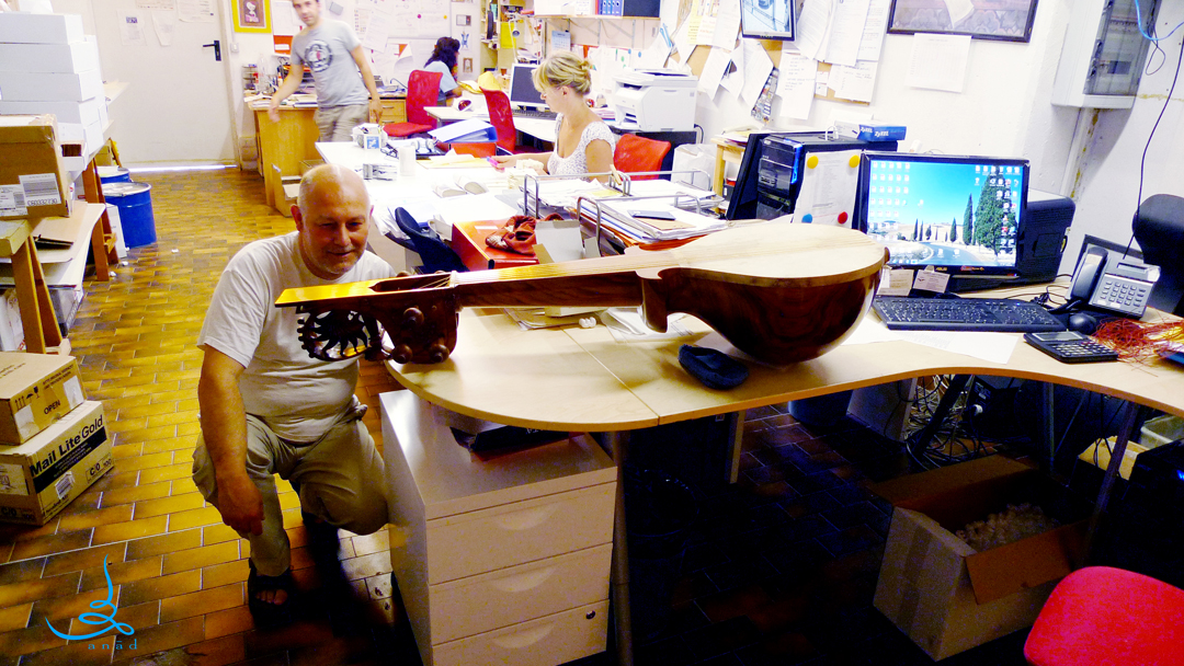 In order to specify the strings of the rabab I have made for Harbhajan Kaur Khalsa of Millis, MA I visited Mimmo’s factory the day before (and yes, I missed the boring Portugallo-Spagna semi-finale) on June 27, 2012. I also met with master classical guitarist Andrea Ferigo of the Conservatorio Di Vicenza who also holds a Diploma in Sitar and also plays the instrument Sarod. Here are some images post-produced by Manpreet Singh: