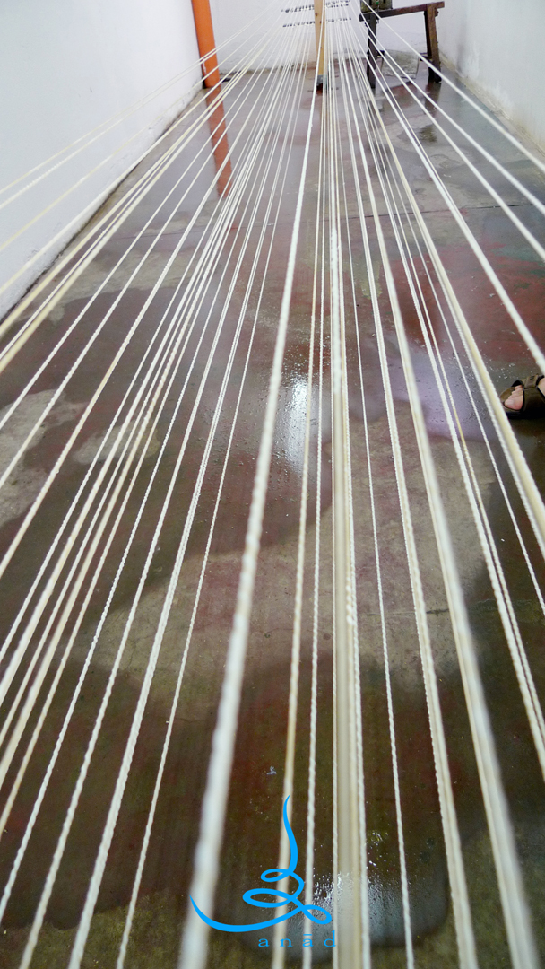 - Measuring the strings that I dressed the Rabab with in Delhi.