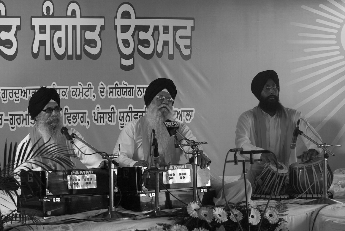 Since, September 3, 2012, I have started my tenure as a Visiting Professor at the Centre on Studies in Sri Guru Granth Saheb (CSSGGS), Guru Nanak Dev University, Amritsar. This visit to Patiala was my first official tour – accompanied by one of my research scholar at the CSSGGS, Jatinder Singh. Professor Balwant Singh Dhillon, the Director of the CSSGGS, had procured requisite permissions so I could hire the services of a cinematographer, and professional audio-video equipment to document the event. The cameraman, Jasbir Singh, and his assistant reached just as Pandit Surinder Singh, a Padma Shri awardee and the younger of the Singh Bandhu duo, began his rendition of “thakur aiso naam teharo“, a composition in raga gujri set to medium tempo teen-tala. The other performers to follow, along with raga name in which they made their main presentation, were: Dr. Jagir Singh (raga ramkali); Bhai Harjot Singh Zakhmi (raga bilaval); Dr. Gurvinder Singh of Batala, a dentist, (raga basant); Bhai Gurmeet Singh Shaant (raga todi) – Gurmeet recited his poem in which he counts the names of the “62” ragas “used by the authors to sing their” Gurbani. It is evident that he has no tradition’s perspective for else he would not count bilaval mangal and various dakkhni raga forms among the actual ragas used in Gurbani; Bhai Kanwarpal Singh of Dehradun, a student of Principal Dyal Singh (raga vadhans); Bhai Inderjit Singh of Mumbai (raga jaitsri); Bhai Kultar Singh, the youngest son of the legendary ragi, Bhai Avtar Singh (raga brindabani-sarang); and finally, Bhai Ravinder Singh, a Hazuri Ragi of Darbar Saheb Amritsar (raga brindabani-sarang).