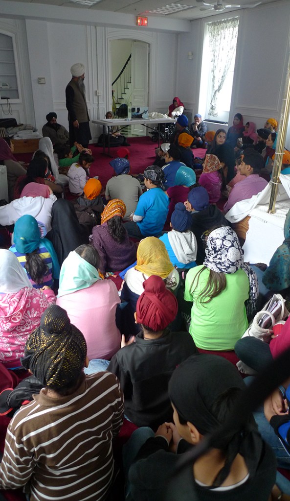 Luigi Hari Tehel Singh gives a live demonstration from Delhi via Skype to about 40 students plus elders.