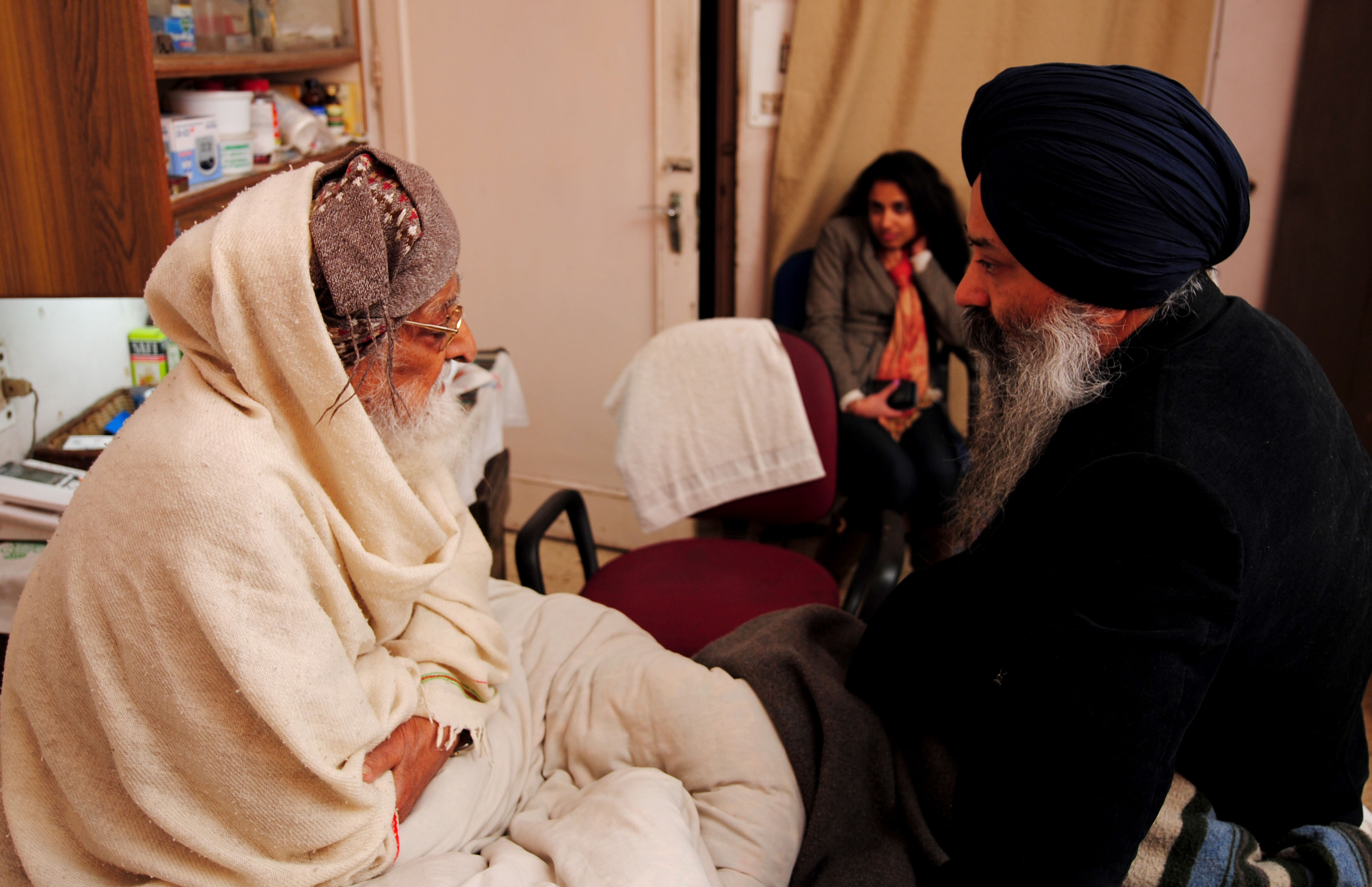 Manleen Kaur Sandhu (backdrop) of the American India Foundation, visually documents my conversation with Bhai Gurcharan Singh regarding the the musico-political scenes pre-partition.