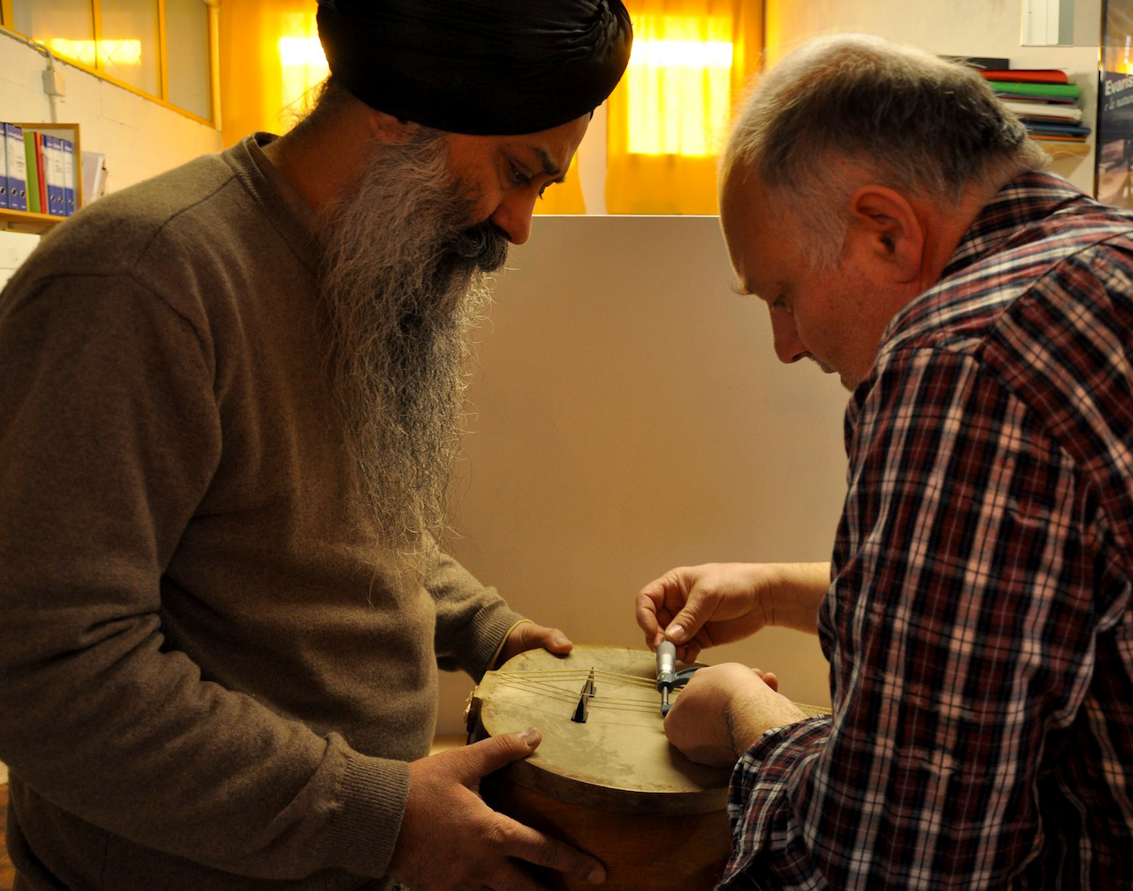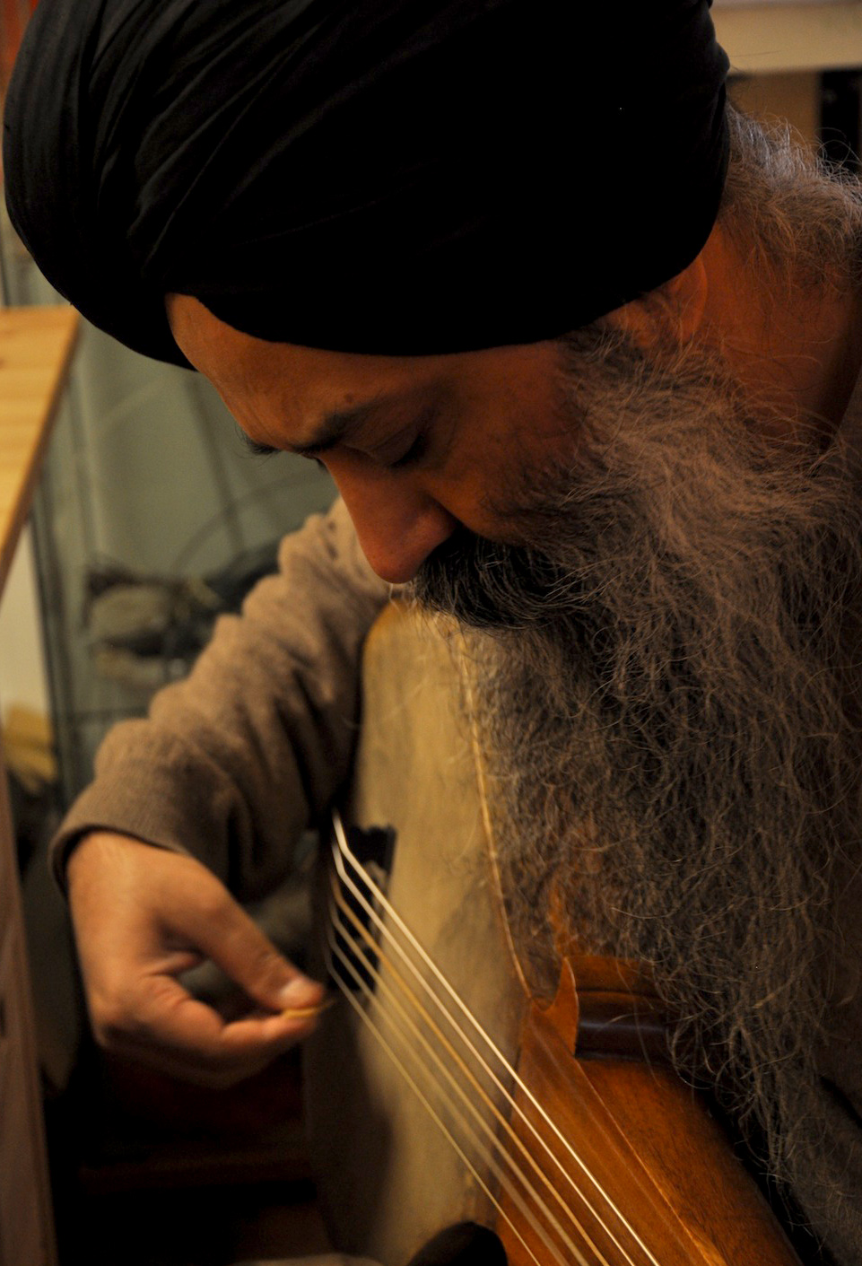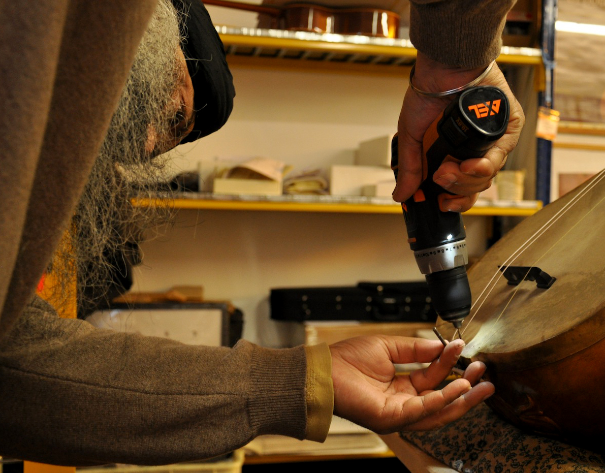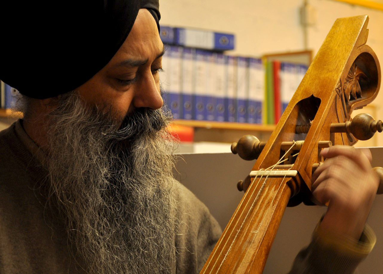 On Wednesday, January 23, 2013, I drove from Florence to Vicenza to meet again with master Gut-string maker, Mimmo Peruffo. I had visited him in June as well when we had calculated and identified the strings for the Rabab made on the specifications of Guru Arjan Dev Ji’s 16th century Rabab. I had made pair of those, one of which was made for my student, Harbhajan Kaur of Millis, MA, while the other, which is yet to be varnished, will be in the collection of Anad Foundation and most probably played by Luigi Hari Tehel Singh. The Rabab I carried with me was the replica of the late 17th century Rabab of Ustad Basat Khan, which was in the collection of the legendary Sarod player, Radhika Mohan Moitra. This collection is being cared for by his youngest disciple, Somjit Dasgupta, who was also featured in the first ever publication (2005) of the Dhrupadi or Hindustani Rabab published by Anad Records Pvt. Ltd.