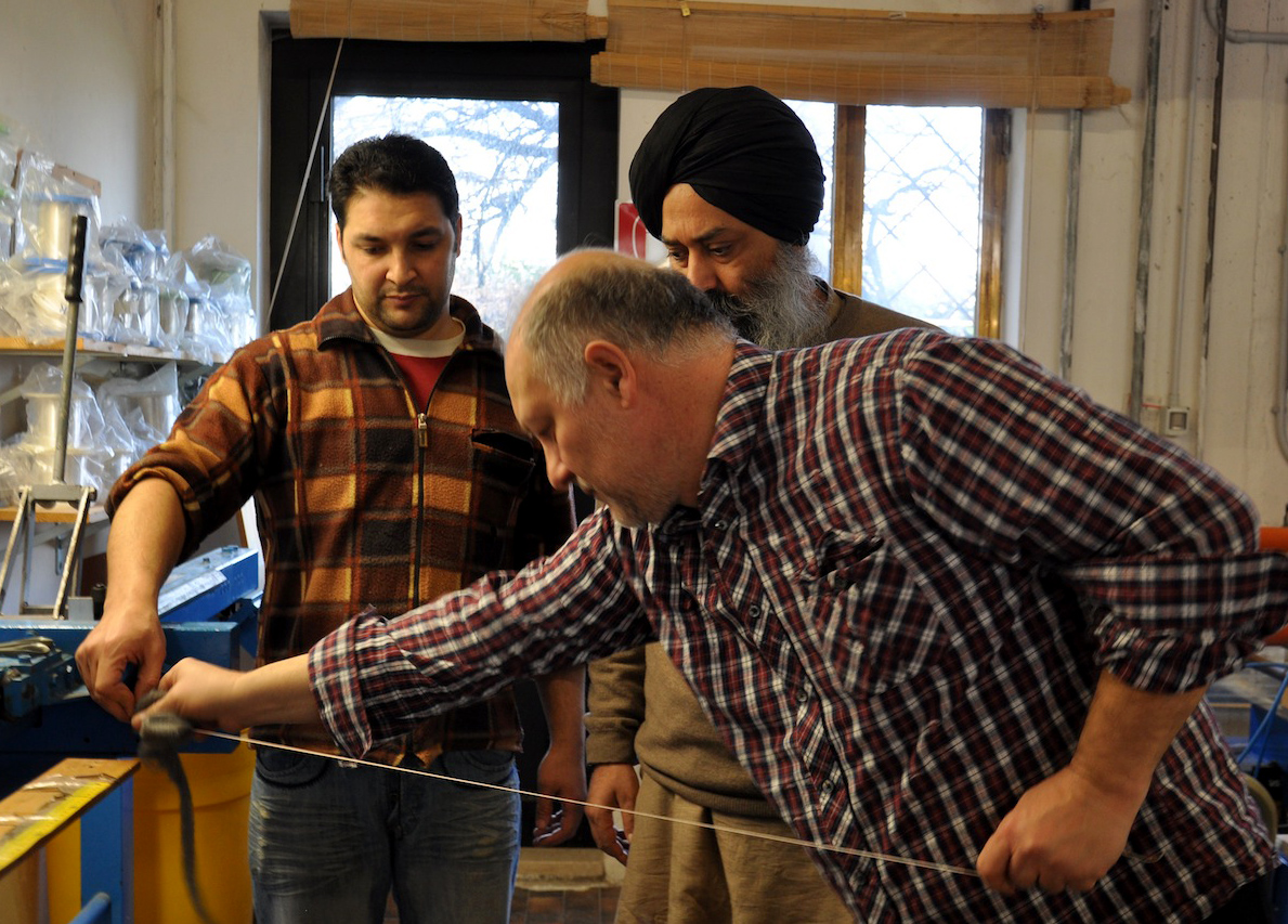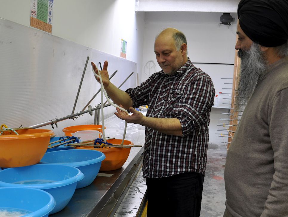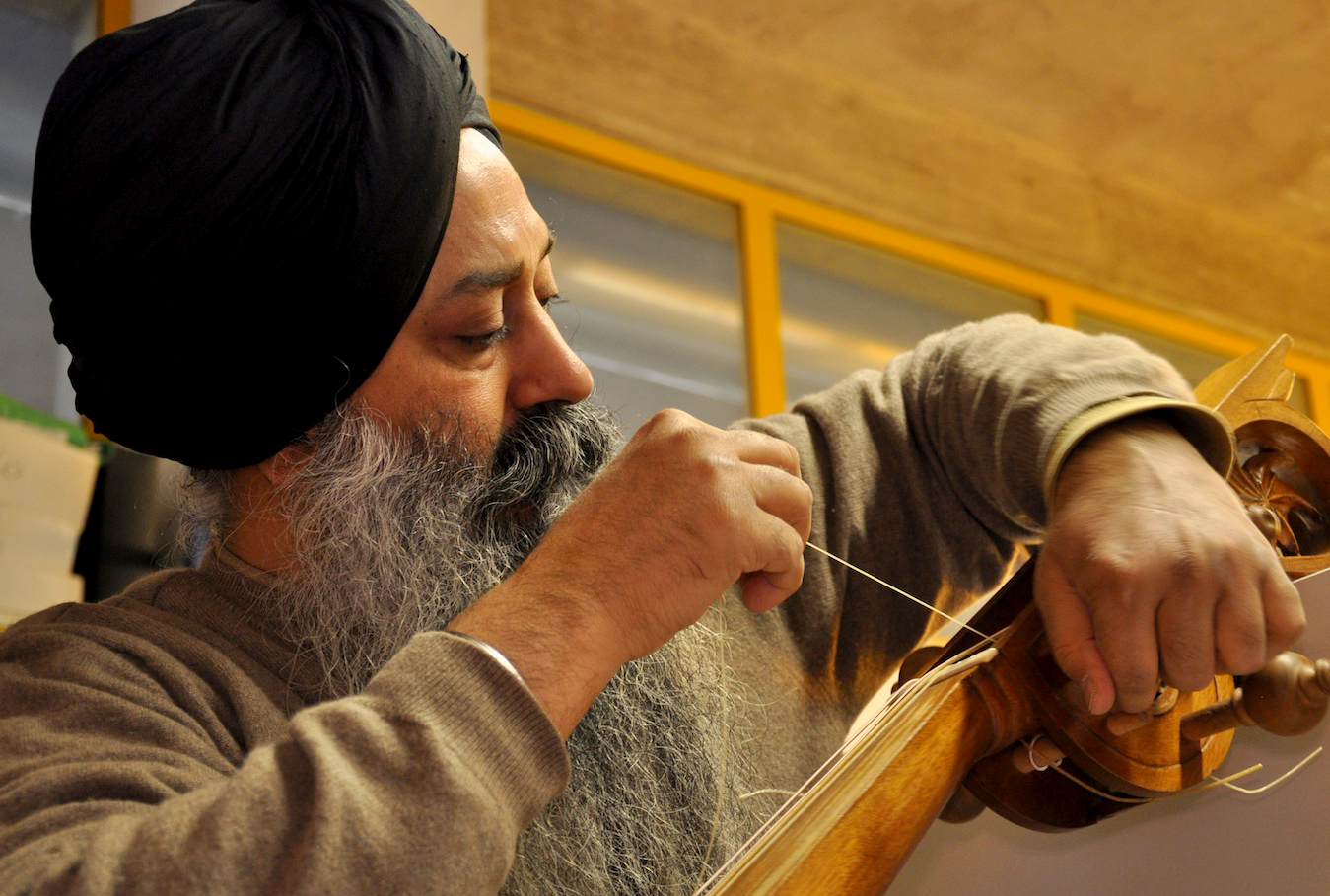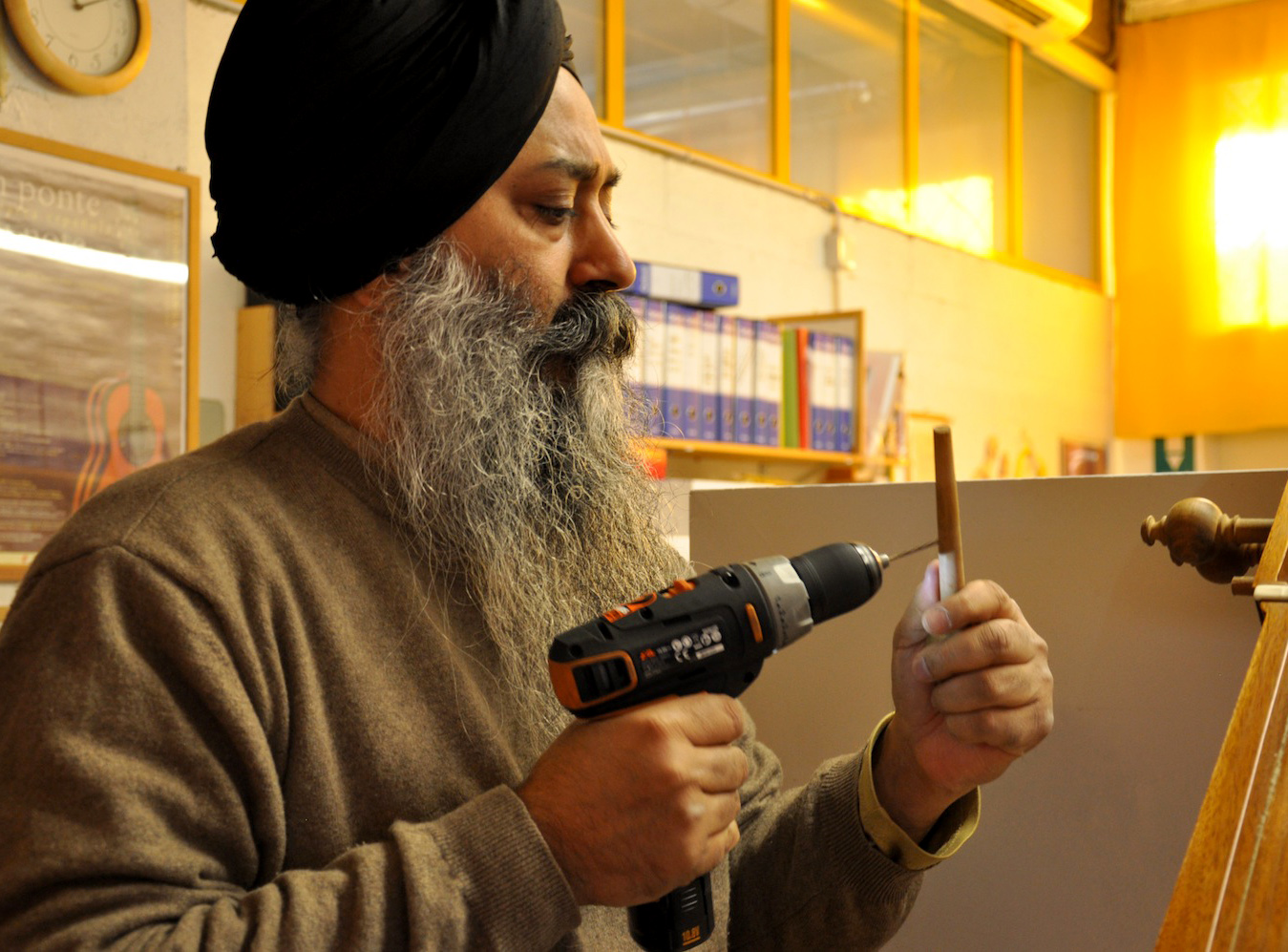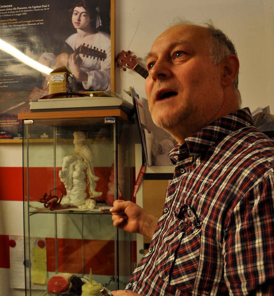 On Wednesday, January 23, 2013, I drove from Florence to Vicenza to meet again with master Gut-string maker, Mimmo Peruffo. I had visited him in June as well when we had calculated and identified the strings for the Rabab made on the specifications of Guru Arjan Dev Ji’s 16th century Rabab. I had made pair of those, one of which was made for my student, Harbhajan Kaur of Millis, MA, while the other, which is yet to be varnished, will be in the collection of Anad Foundation and most probably played by Luigi Hari Tehel Singh. The Rabab I carried with me was the replica of the late 17th century Rabab of Ustad Basat Khan, which was in the collection of the legendary Sarod player, Radhika Mohan Moitra. This collection is being cared for by his youngest disciple, Somjit Dasgupta, who was also featured in the first ever publication (2005) of the Dhrupadi or Hindustani Rabab published by Anad Records Pvt. Ltd.