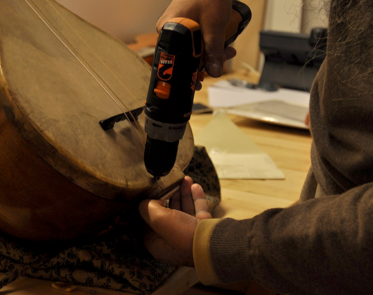Years ago, when I had visited Mimmo Peruffo the first time, I had carried a lot of samples of the gut-strings made by him. I had tested quite a few on the Rabab but it was now time to establish what will be the standard suggested stringing. The instrument is sounding fabulous now – the sound is much larger than it was before and it is now tuned to D#.