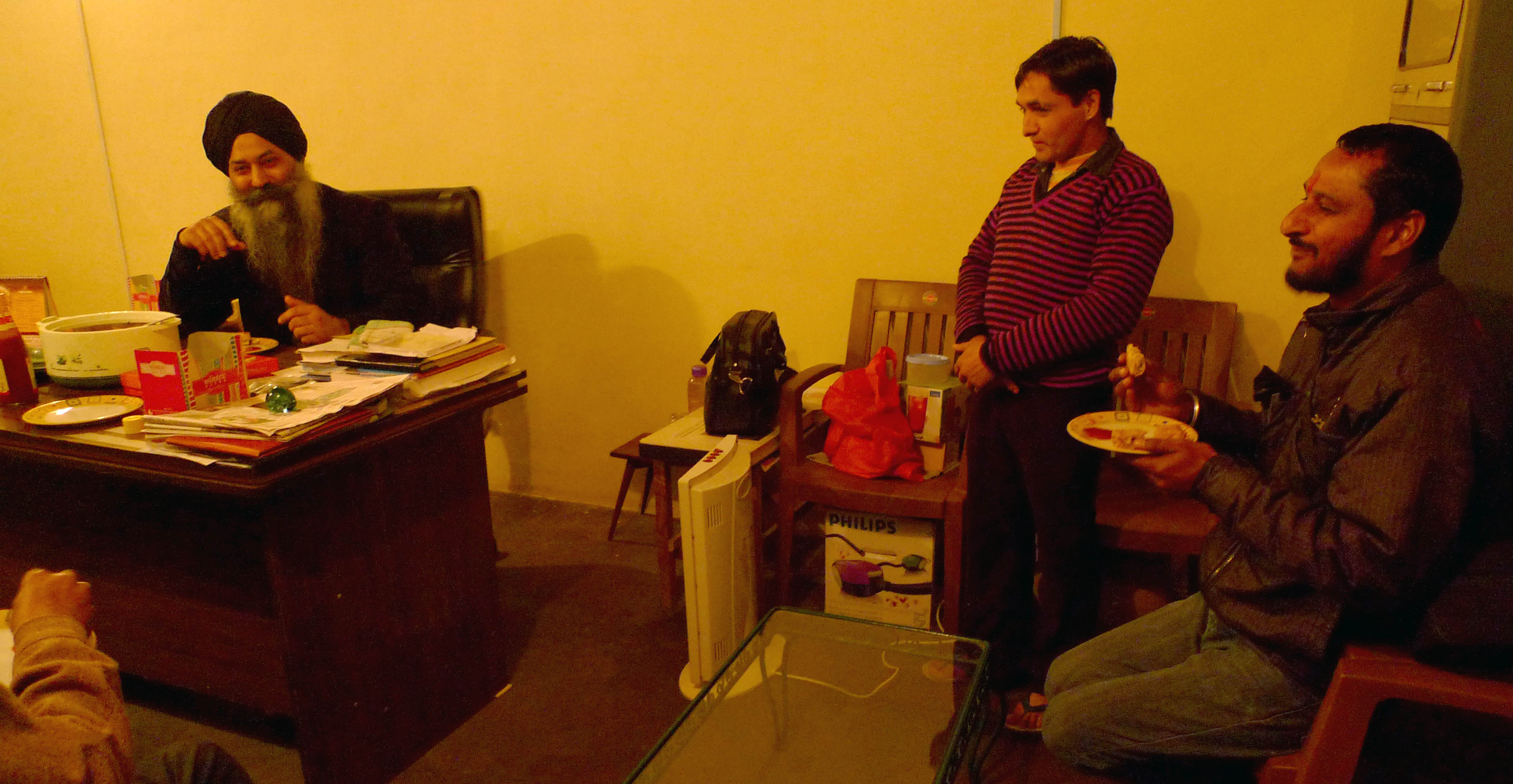 While driving towards Sultanpur Lodhi, I saw Professor Kartar Singh on the highway waiting for a bus just past town Khmano on Chandigarh-Ludhiana highway. I had to make an abrupt stop and reverse the old lady Innova in order to block the bus which was about to be driven away. I got him off the bus for he had already climbed inside and was looking for a place to sit. I was half worried with an eye on my vehicle to make sure nobody ran away with it, as we see sometimes in the movies – motor vehicles of all kinds being ripped off leaking folks.