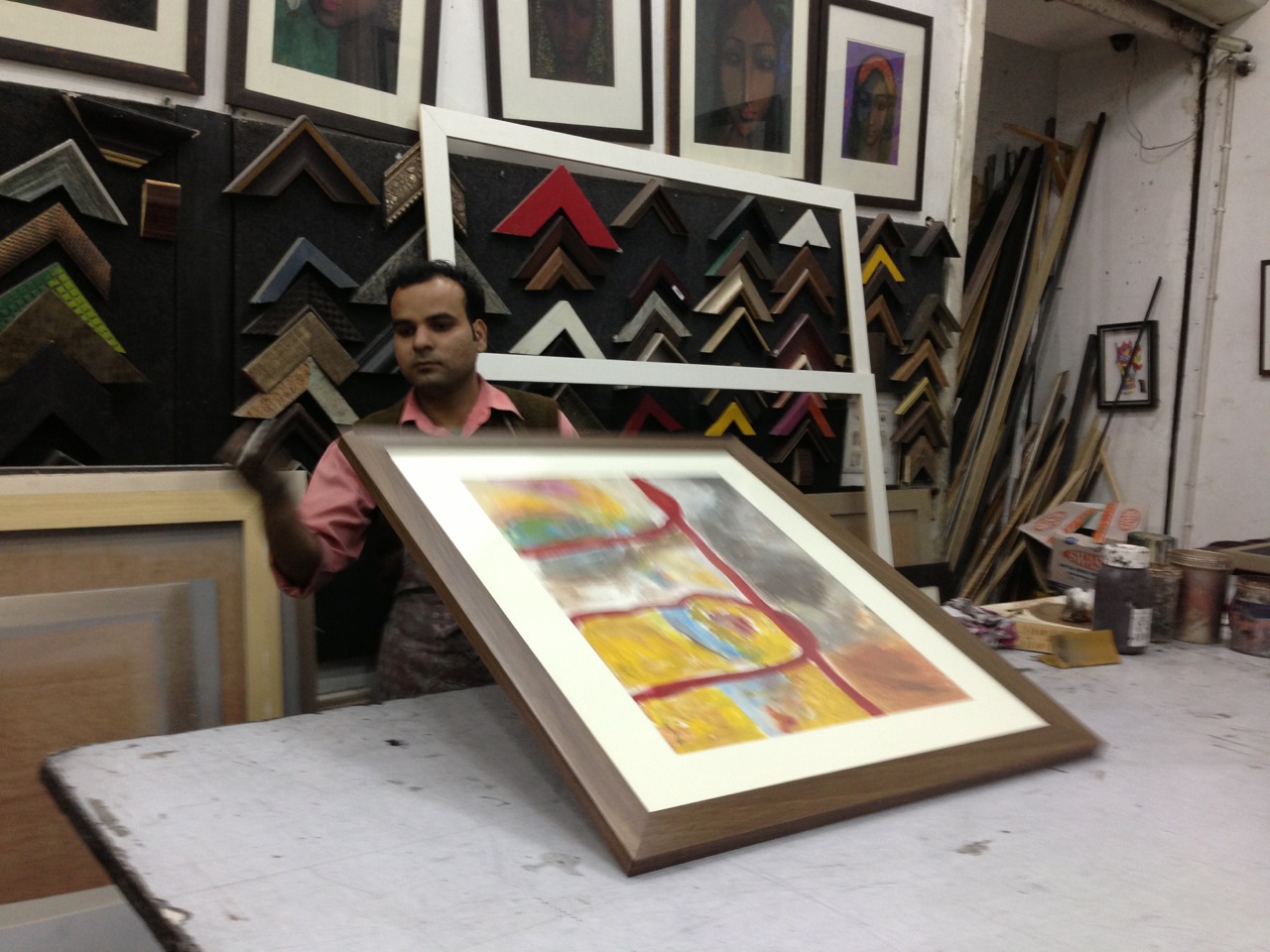 Friends, I am merely talking of framing paintings! Hari Om Lal runs a massive enterprise called Sharma Framing House at Okhla Industrial Area, New Delhi. He has been the favoured framer for artists like M F Hussain, Krishen Khanna, Swaminathan, Manjit Bawa, Paramjit Singh, Sidharth and now also for Hardev Singh.