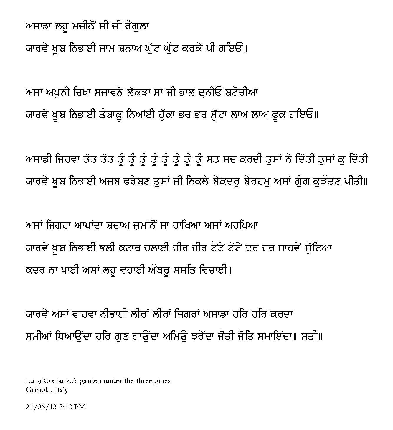 Jigra Sati – A poem (Punjabi) 03 Wednesday Jul 2013 Posted by bhaibaldeep in ANAD Poetry Page ≈ Leave a comment I wonder this would be called a poem or me a poet, but whatever it is, am sharing with you: Share this: Click to share on X (Opens in new window) X Click to share on Facebook (Opens in new window) Facebook Like Loading...
