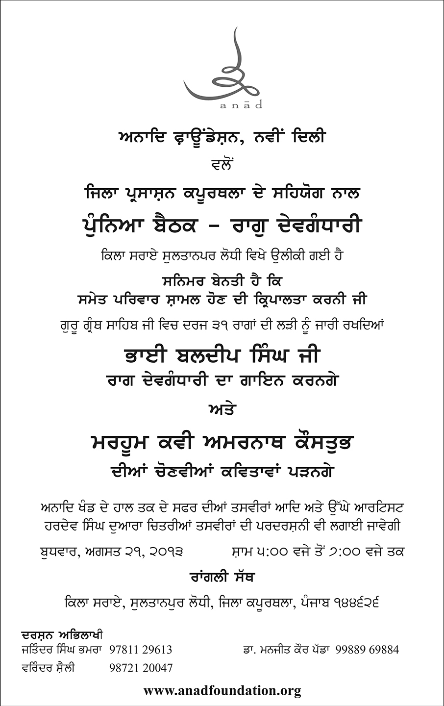 Punya Baithak 31-Raga Series VI – Raga Devgandhari 19 Monday Aug 2013 Posted by Anad Foundation in ANAD Events, ANAD Khand, ANAD Obituaries, Rāngli Sath ≈ Leave a comment Share this: Click to share on X (Opens in new window) X Click to share on Facebook (Opens in new window) Facebook Like Loading...
