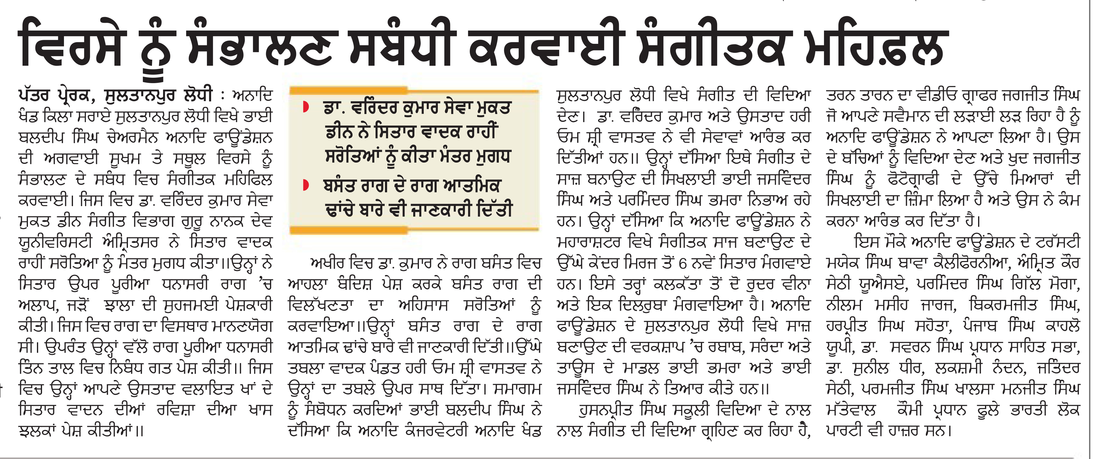 Hori-Basant Festival at the Qila: Press Report in Punjabi Jagran 13 Friday Mar 2015 Posted by Anad Foundation in ANAD Events, ANAD Foundation ≈ Leave a comment TagsAnad Share this: Click to share on X (Opens in new window) X Click to share on Facebook (Opens in new window) Facebook Like Loading...