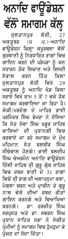 - A report in Punjabi vernacular, Daily Ajeet, by Narinder Singh Sonia on October 28, 2012.