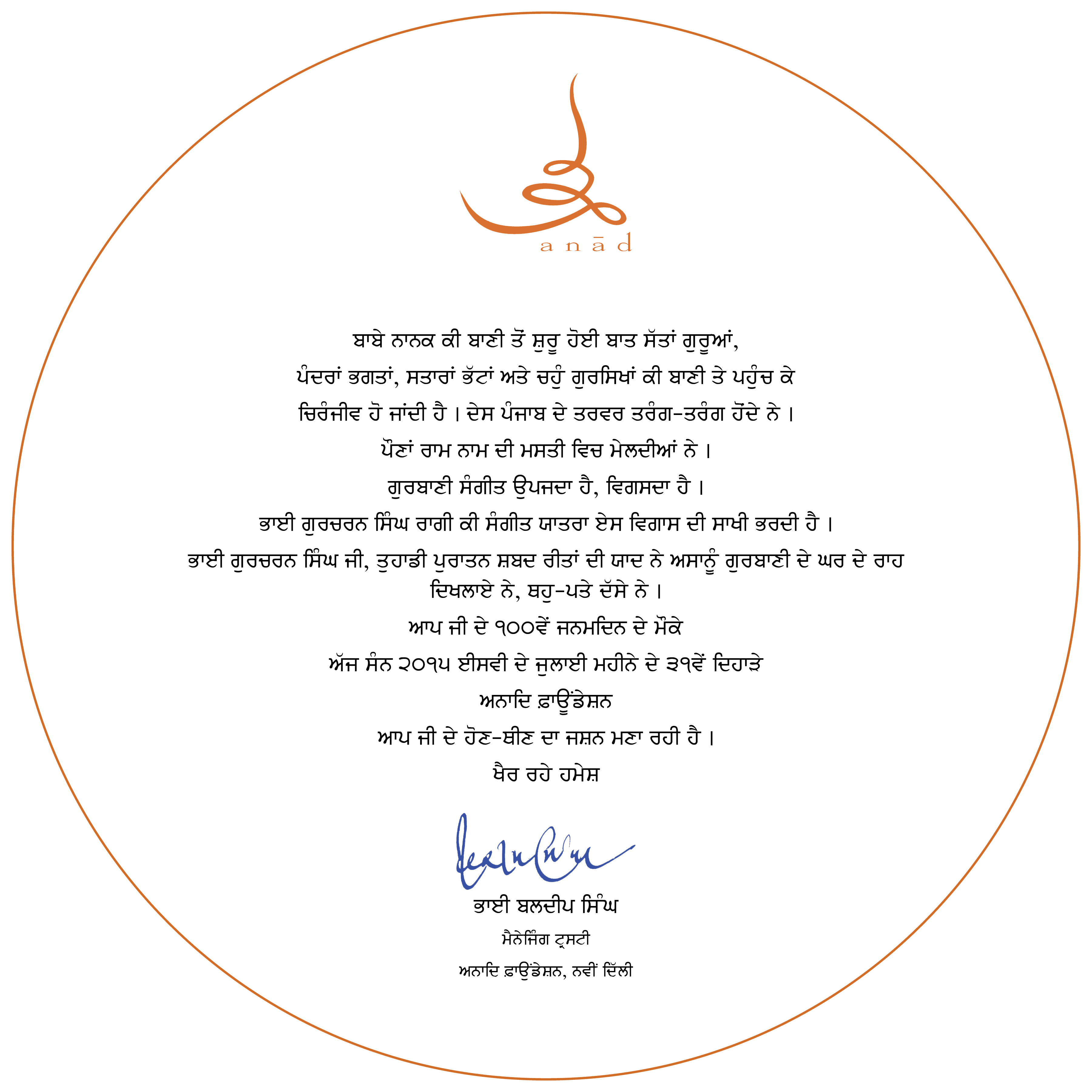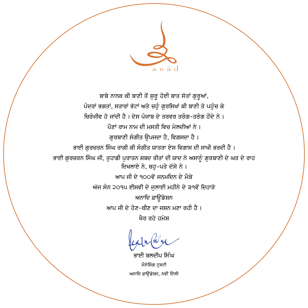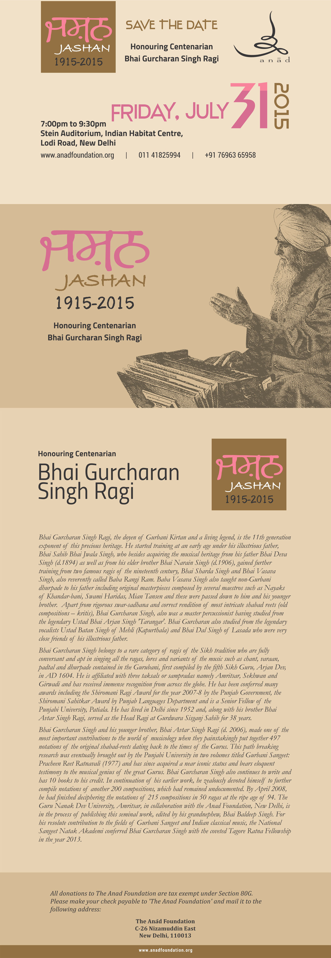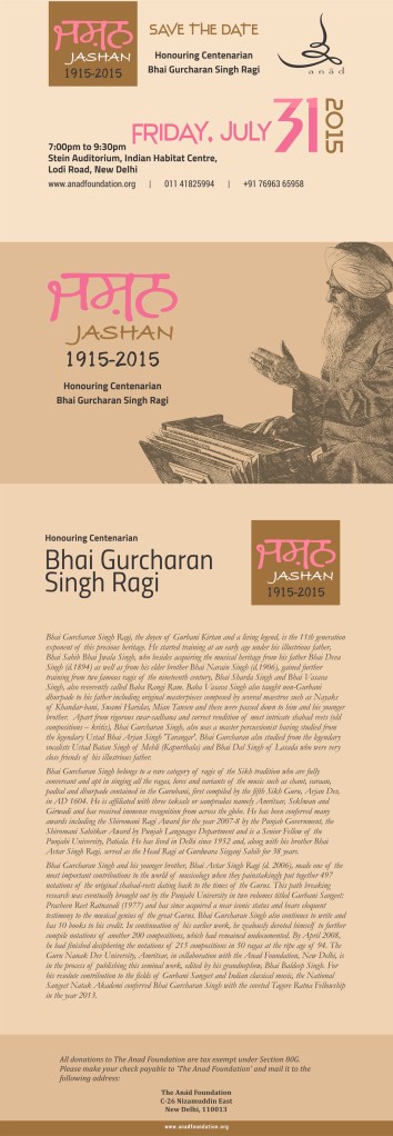 Jashan 1915-2015 Jashan 1915-2015: Honouring Centenarian Bhai Gurcharan Singh Ragi Save the Date Card Jashan Poster Citation Share this: Click to share on X (Opens in new window) X Click to share on Facebook (Opens in new window) Facebook Like Loading...
