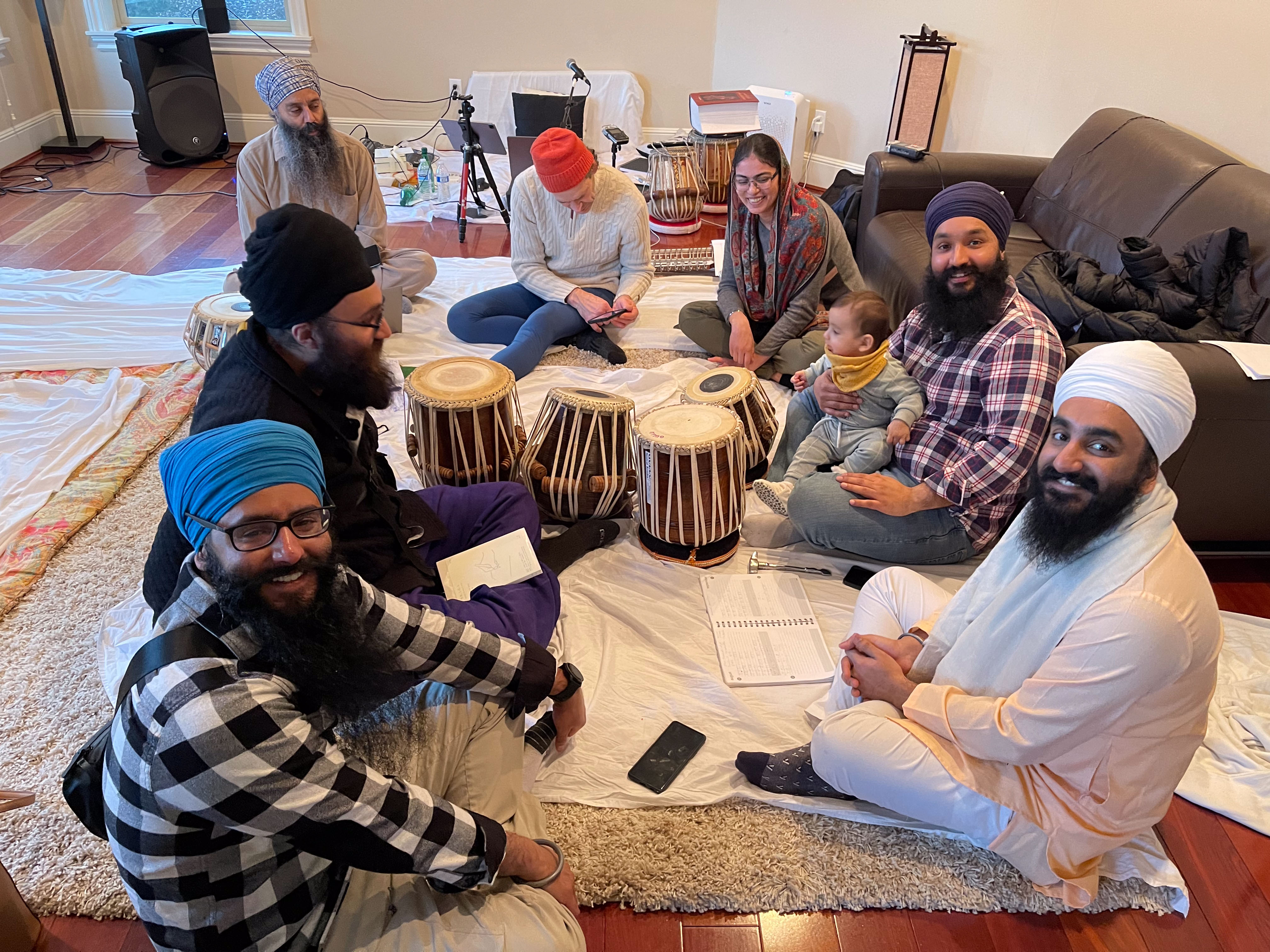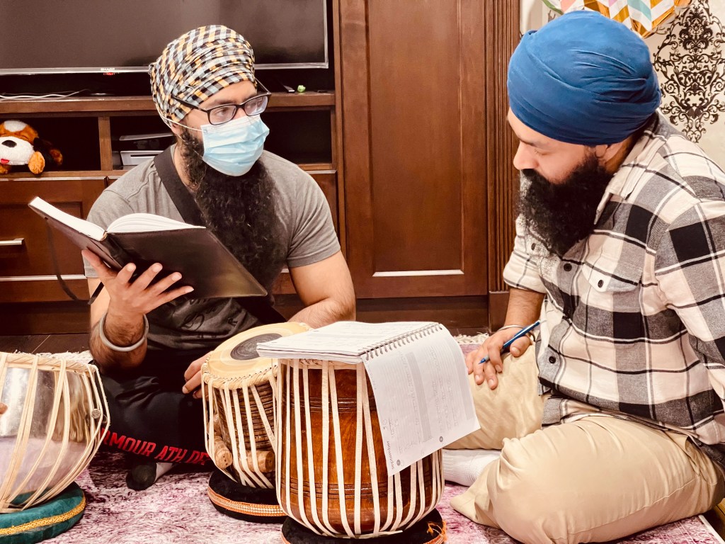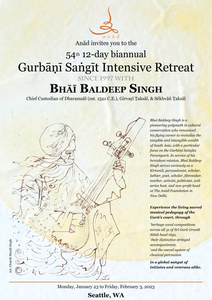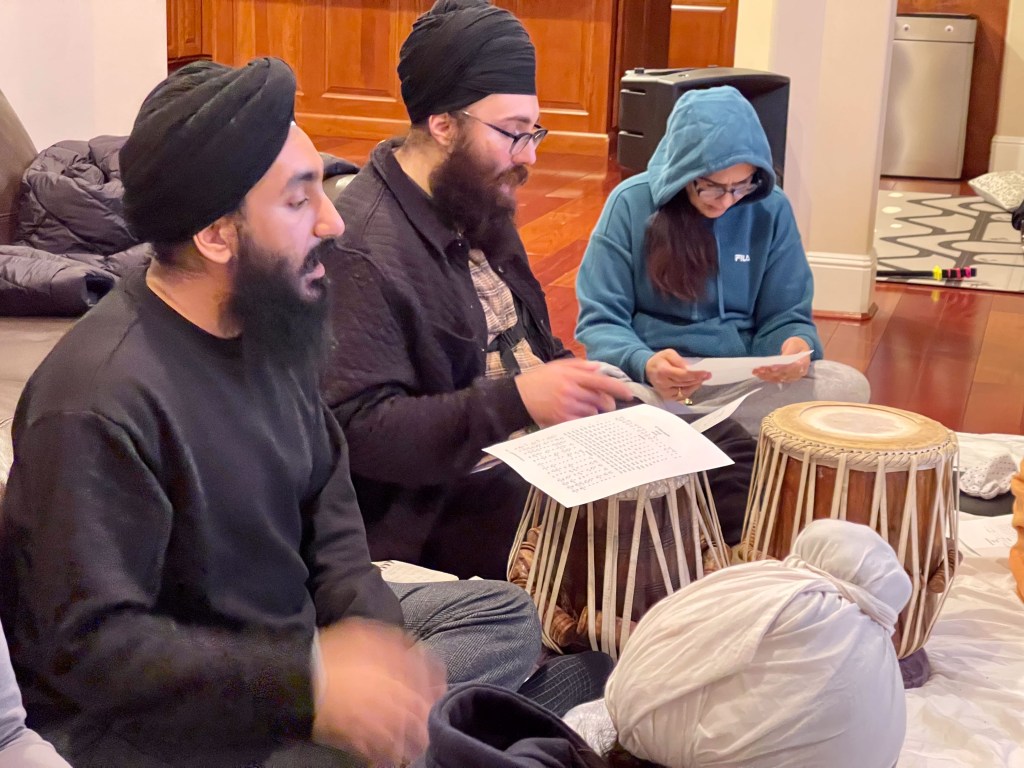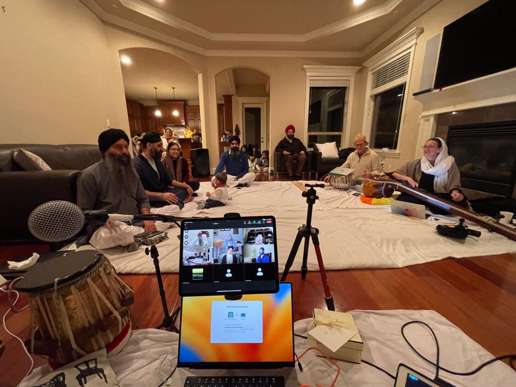 Here are a few images from the 54th 12-day Gurbāṇī Saṅgīt and Nāda Yōga Intensive Retreat hosted by Sardār Karandeep Singh Anand, and Bibi Avideep Kaur Anand. Also included are images from the Surrey and Vancouver visits where I met my student Keerat Kaur and her husband, Member of Parliament from Surrey, Randeep Singh Sarai, visit to the University of Washington to meet dancer and artist, Kuldeep Singh, and then in Rochester with Dr. Henna and Dr. Amarjeet Virdi and their three wonder kids, members of the Gurdwara Sangat and spending time with Dr. Sawaiman Singh. Visits to Ohio and Montreal followed to meet with Harnav Bir Singh, Gagandeep Kaur, artist Manjit Singh Chatrik, and then Baljeet Singh Chadha who also invited me to visit the Sikh Arts Gallery at the museum that he and his wife have so very kindly envisioned. It was a surprise meeting with the son of Ustad Darshan Singh Tibar, Harkirat Singh Kular, at his office. I got to interview him about his respected dad’s contributions. He so very graciously passed on the manuscripts of his elder classmate, Nihang Karam Singh, from whom I had studied a composition in 1990.
