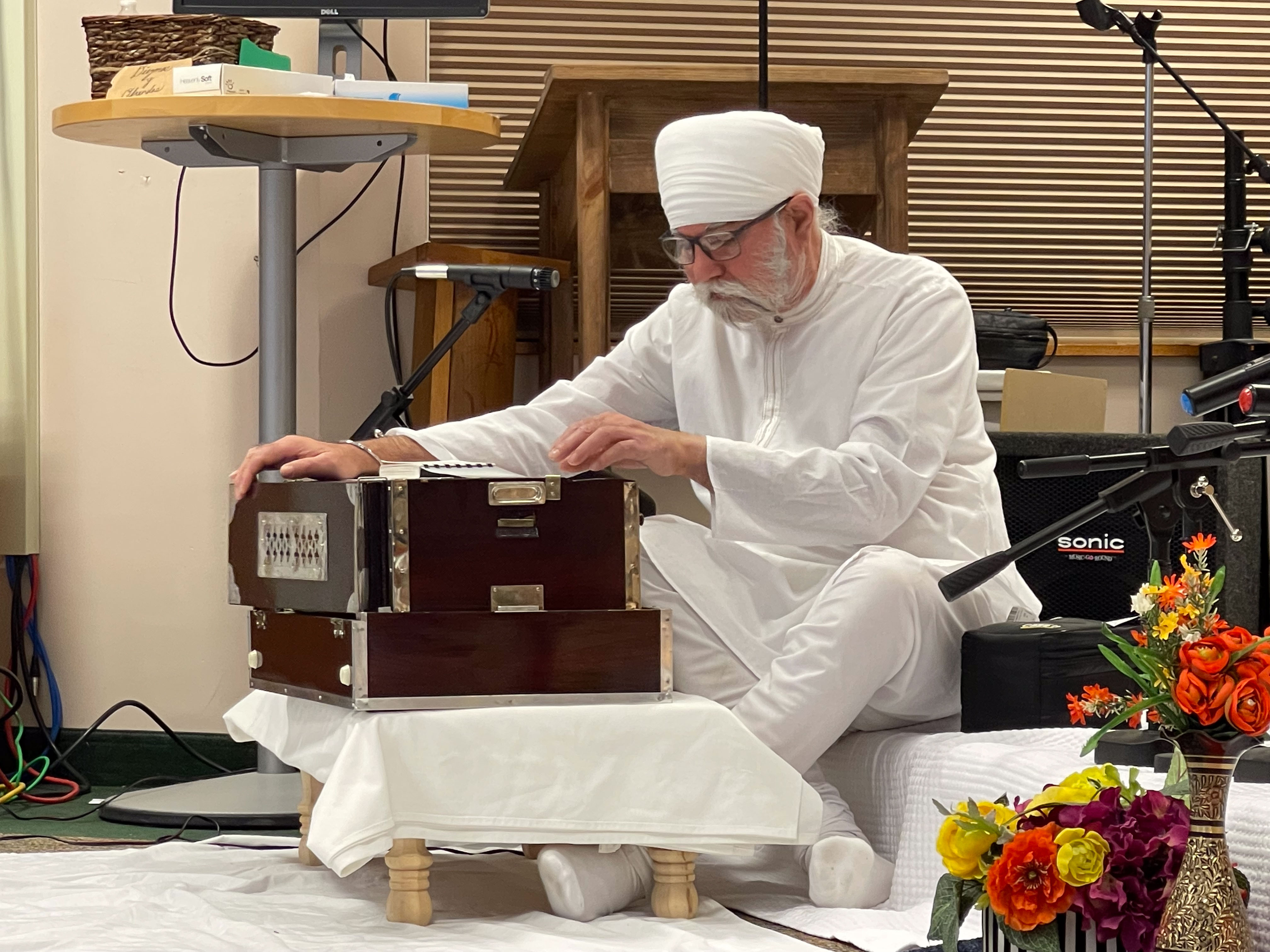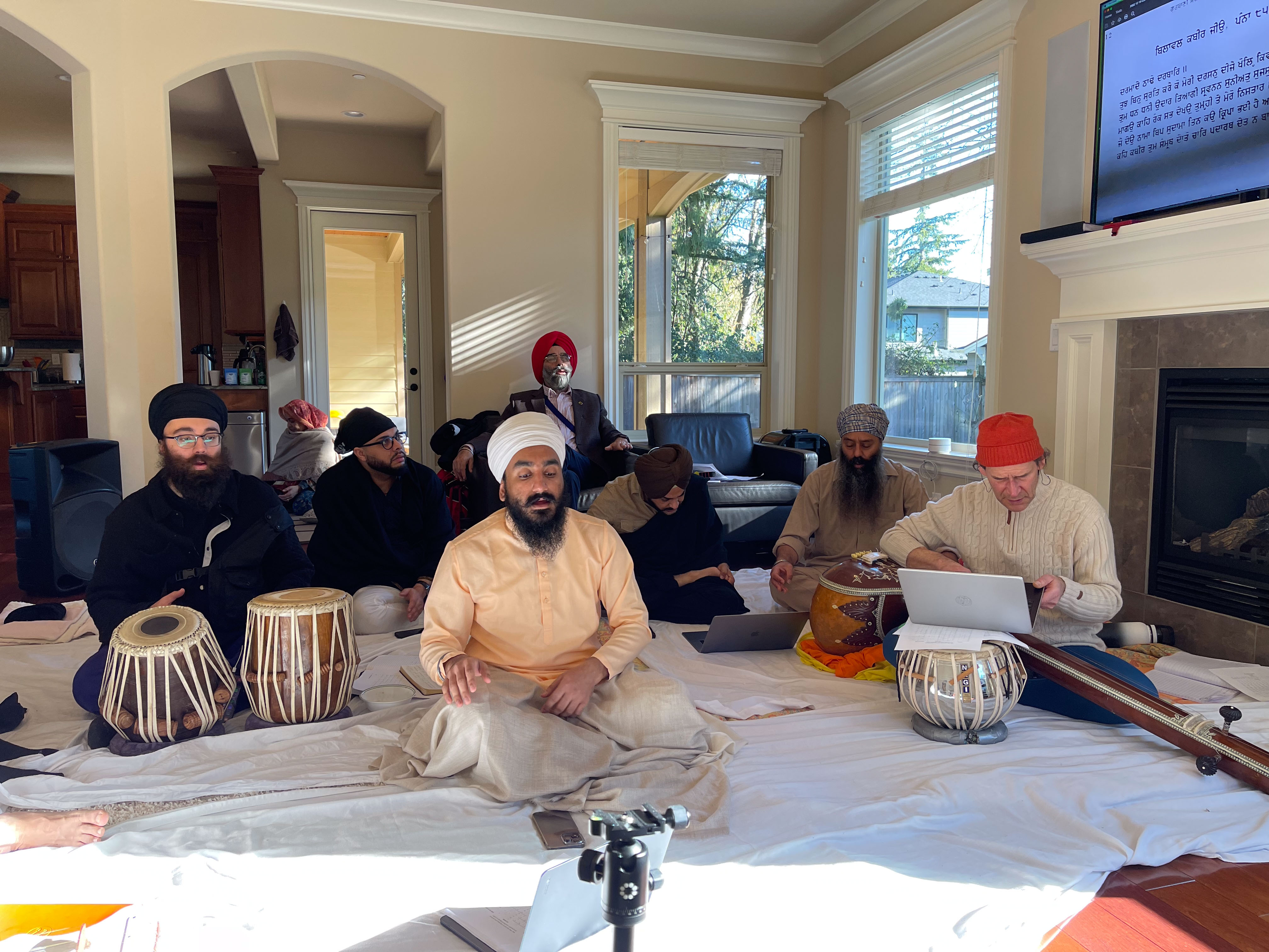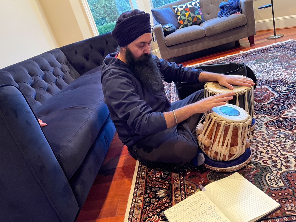 Here are a few images from the 54th 12-day Gurbāṇī Saṅgīt and Nāda Yōga Intensive Retreat hosted by Sardār Karandeep Singh Anand, and Bibi Avideep Kaur Anand. Also included are images from the Surrey and Vancouver visits where I met my student Keerat Kaur and her husband, Member of Parliament from Surrey, Randeep Singh Sarai, visit to the University of Washington to meet dancer and artist, Kuldeep Singh, and then in Rochester with Dr. Henna and Dr. Amarjeet Virdi and their three wonder kids, members of the Gurdwara Sangat and spending time with Dr. Sawaiman Singh. Visits to Ohio and Montreal followed to meet with Harnav Bir Singh, Gagandeep Kaur, artist Manjit Singh Chatrik, and then Baljeet Singh Chadha who also invited me to visit the Sikh Arts Gallery at the museum that he and his wife have so very kindly envisioned. It was a surprise meeting with the son of Ustad Darshan Singh Tibar, Harkirat Singh Kular, at his office. I got to interview him about his respected dad’s contributions. He so very graciously passed on the manuscripts of his elder classmate, Nihang Karam Singh, from whom I had studied a composition in 1990.