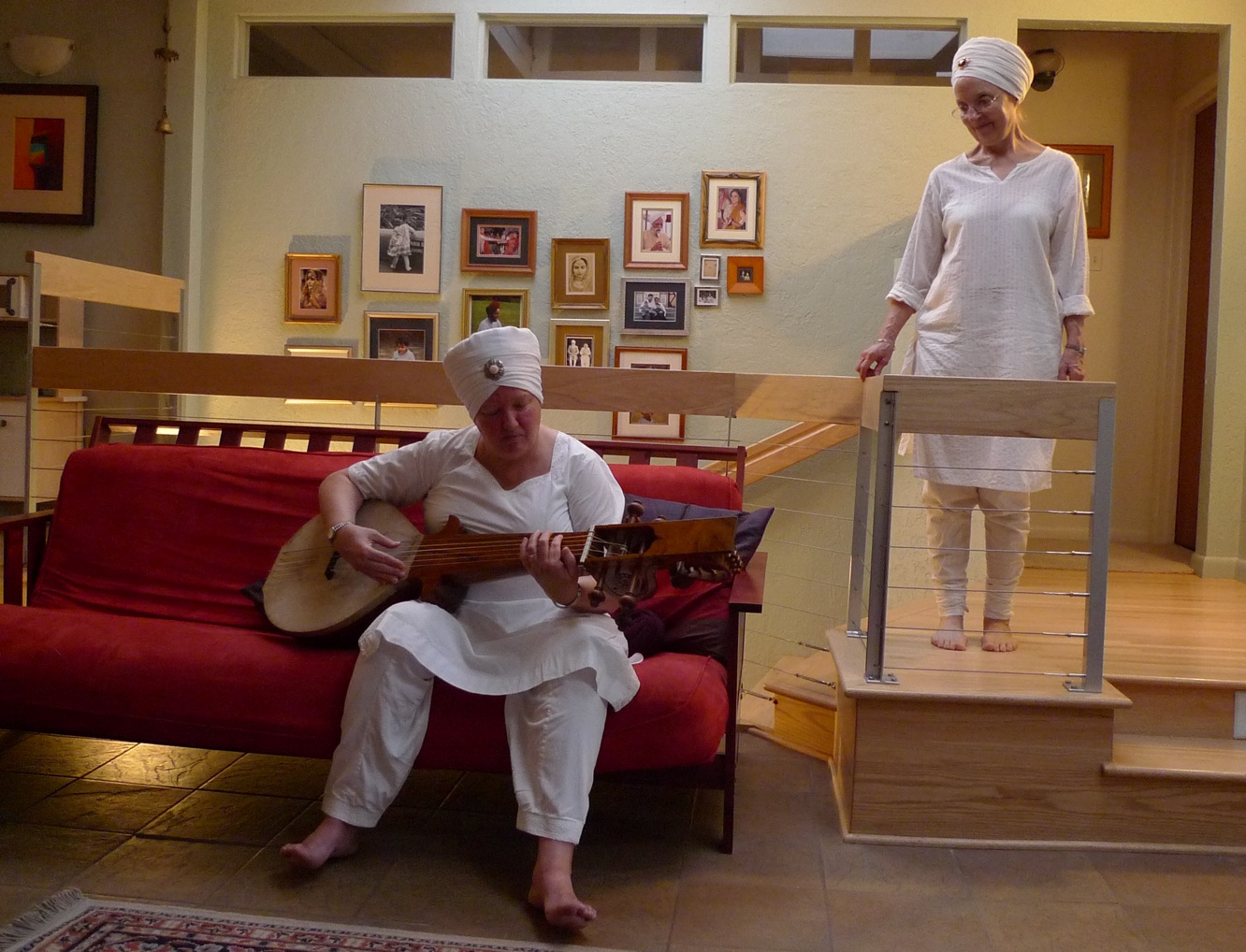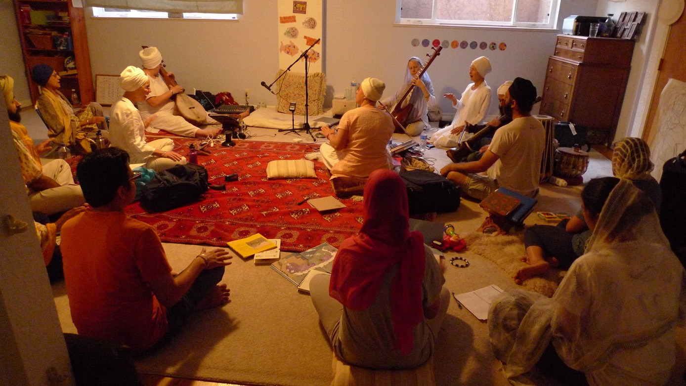 The kirtan course started with the students gathering and reconnecting. Those that arrived early helped with the shopping and set-up. The group had been invited to sing at the Albuquerque gurdwara so the first morning was spent preparing for the sangat. That evening Bhai Baldeep arrived and after carrying the newly crafted rabāb by hand from India to Italy and then New Mexico, he presented the beautiful instrument to Harbhajan Kaur. She immediately began playing the rabāb and the two became close companions for the remainder of the course.